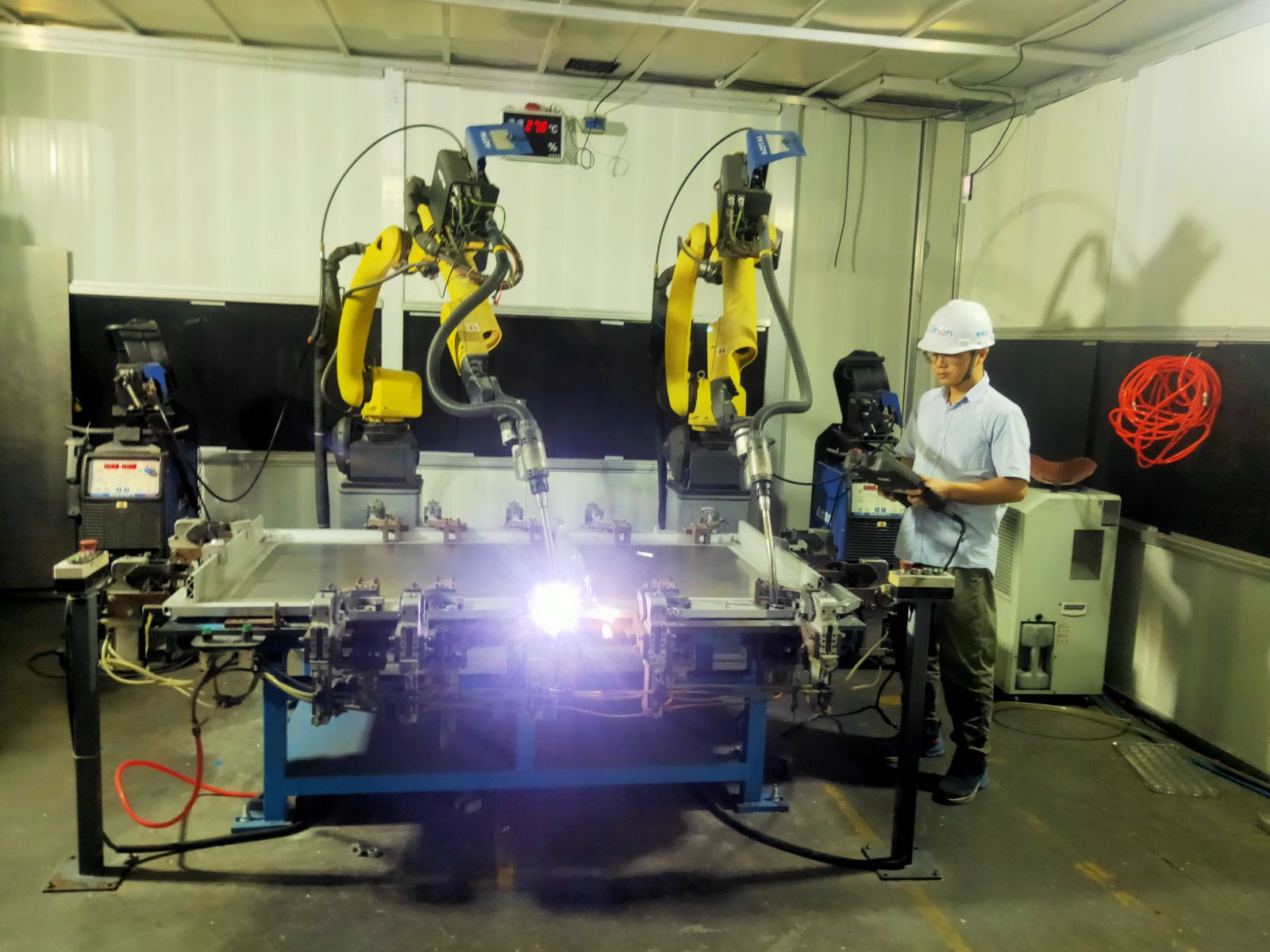 随着电池托盘订单日益激增,公司加大装备升级和技术改造,新增8条托盘产线,在这期间,陆镜光将所有机器人全部建造成机器人焊接站,先后建设成电池托盘挂耳机器人焊接站8套、电池托盘拼框机器人焊接站16套、电池托盘底板点焊机器人焊接站4套、电池托盘横梁机器人焊接站4套、电池托盘边框套筒机器人焊接站8套,提升了公司设备的利用率,促进了公司生产流程智能化与自动化进程,实现了生产规模、生产效率、产品质量大幅提高和产品单位能耗的降低,为上量提质增效贡献了重要力量。
