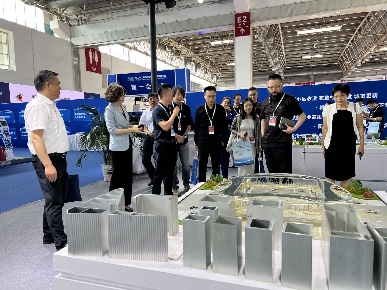 中国住房和城乡建设部副部长秦海翔携中国建筑文化中心党委书记、主任尚少岩、中国建筑文中心副主任李吉祥、北京规划和自然资源委员会二级巡视员陶志红,建筑节能与科技司司长陈少鹏、北京市住建委主任郭宁等莅临展位参观。各级领导对铝合金天桥在城市发展、低碳建设以及科技应用等领域所发挥的重要作用给予了肯定,表达了用景观天桥提升城市品味的殷切期望,嘱咐我们要坚持“人民城市,幸福家园”的主旨走景观天桥的道路,参与到城市的建设中去,在支持国家工业产业转型政策的同时也为城市带来更美丽的风景。
