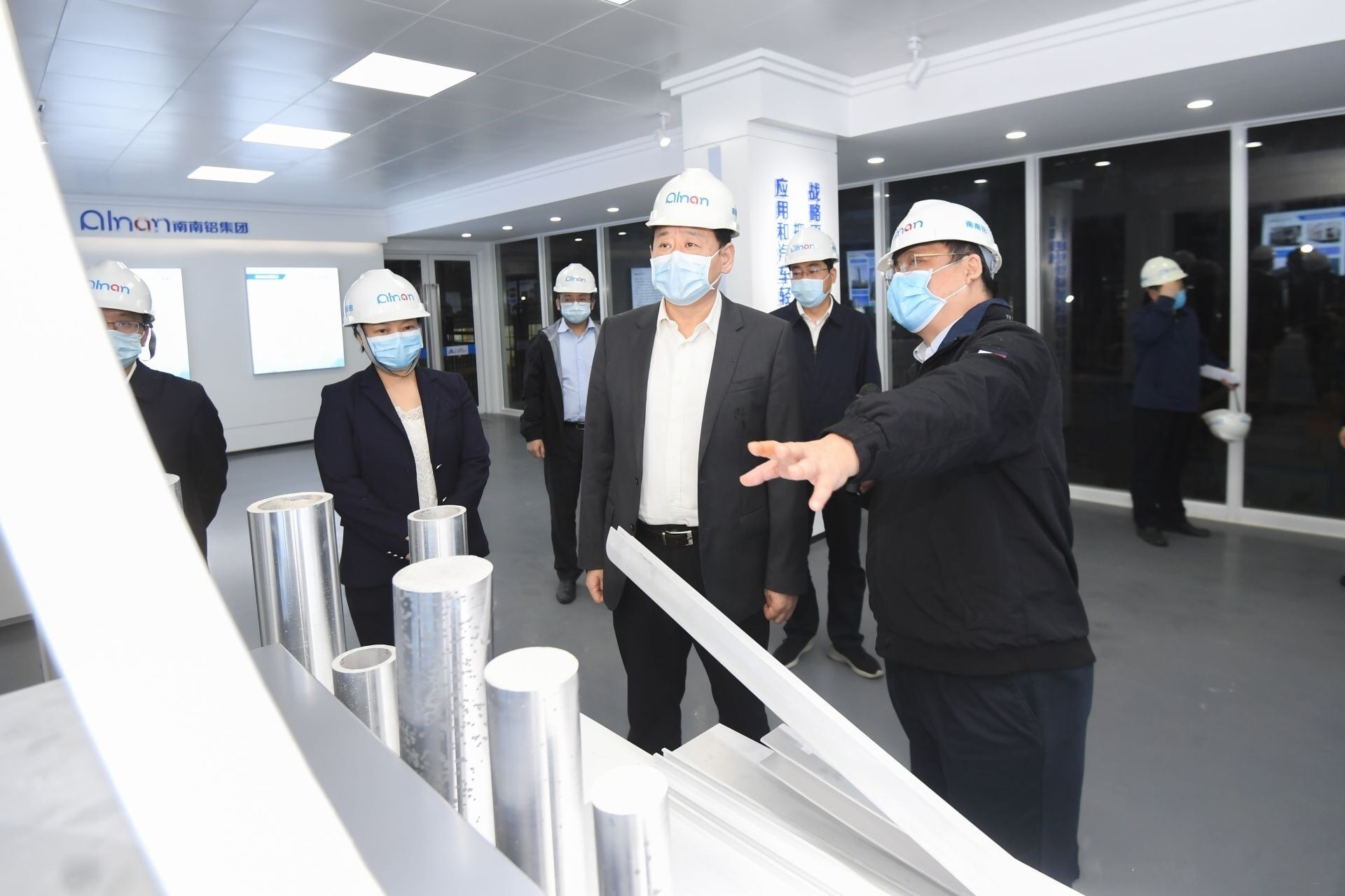 在习近平总书记视察南南铝三周年之际,4月22日,自治区党委常委、市委书记王小东到我公司开展调研活动,黄宁、朱会东参加调研,集团董事长郑玉林陪同调研。