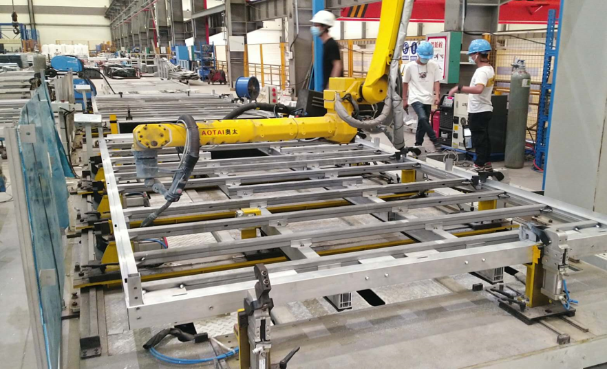 除此之外,南南铝通过设计通用的、可调节的车底架工装夹具,同步电机驱动工装夹具整体移动车底架,解决底边框、副纵梁Y坐标变化无法焊接问题,实现大部分车型的车底架智能化、自动化、科技化的精密焊接。