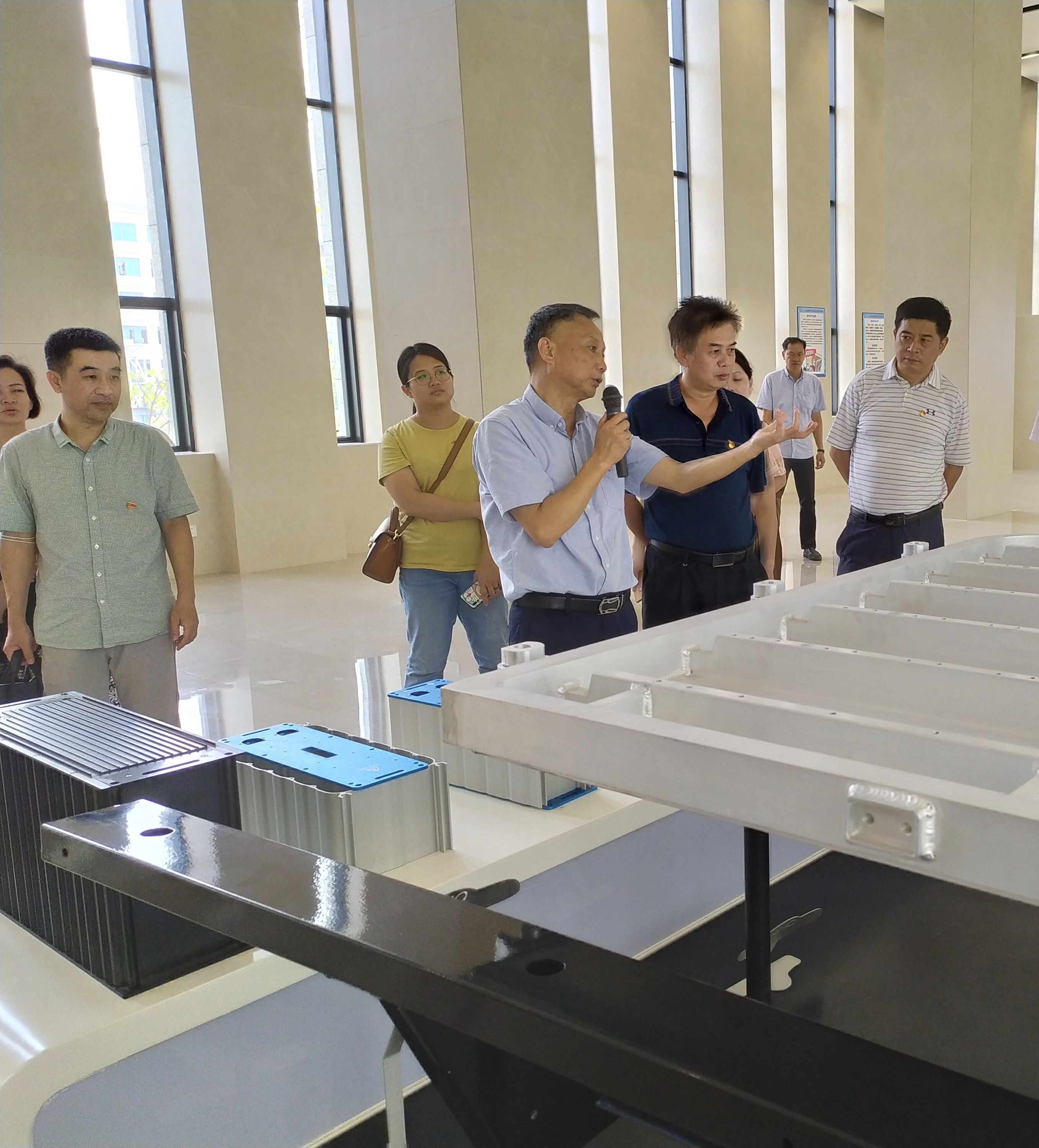 市工信局组织党员到南南铝集团公司组件事业部展厅和生产车间,实地考察汽车、新能源及装配式特种建筑铝合金组件及材料生产情况