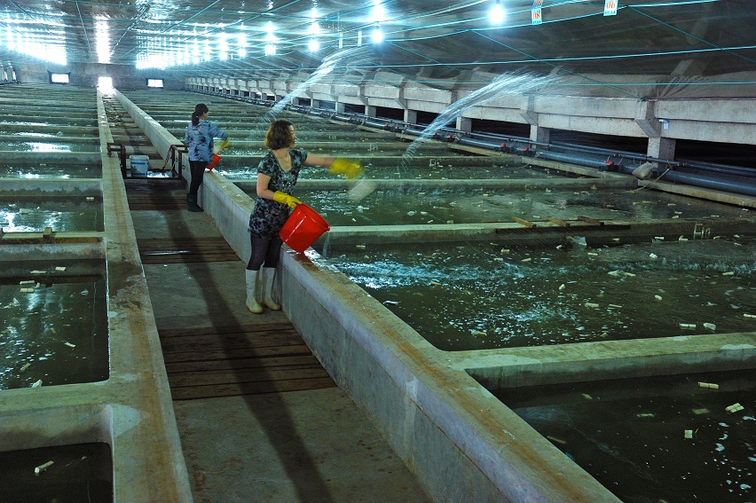 孵化厂占地6400亩,投资2亿元,建苗室20栋,孵化水体6.5万立方米,年产海蜇苗3亿只、海参苗15万斤、南美白虾苗20亿尾、中国对虾苗10亿尾、车虾苗2亿尾、梭子蟹苗5000万只、半滑舌鳎(鳎板鱼)200万条、牙鲆鱼1000万条、梭鱼2000万条、大竹蛭5亿枚、中华虎头蟹2000万只。